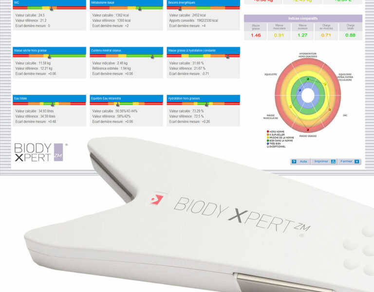 A chaque consultation, je vous propose de mesurer votre composition corporelle avec le Biody Xpert ZM II, un bio-impédancemètre professionnel.